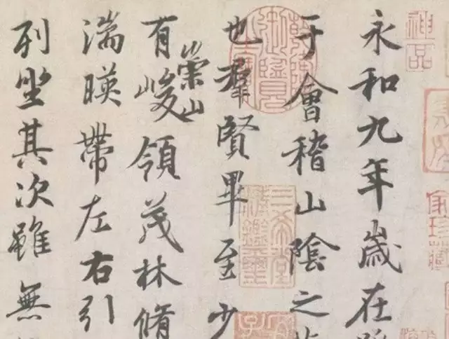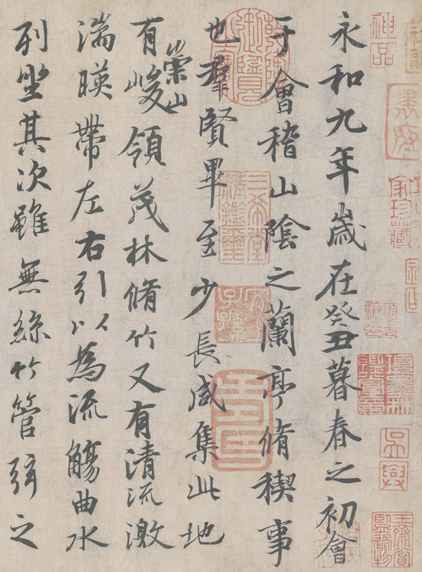 王羲之《兰亭序》,被誉为“天下第一行书”。《兰亭序》具有很强的艺术特色。其突出之处就是章法自然,气韵生动。通观全文,从容不迫,得心应手,使艺术风格同文字内容有机结合起来,充分表现了王羲之与朋友聚会时快然自足之情怀。情文并茂,心手合一,气韵生动,被历代学书者奉为学习行书的典范。
