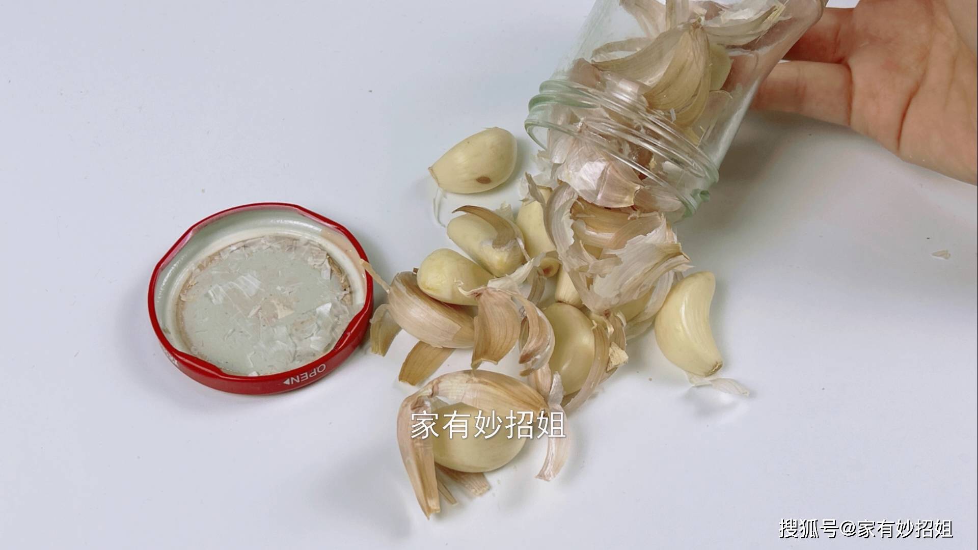 在摇晃的过程中,大蒜就会与玻璃瓶的内壁不断的发生撞击,这样蒜皮就会轻松脱落。大概摇晃上一会儿我们就会发现,蒜皮大部分都已经脱落了。接着我们再打开盖子,把它倒出来,大蒜就剥好了,剩下的一点蒜皮只需要用手轻轻一揭,也就能剥掉了。这个剥大蒜的方法,省时又方便。如果今天的文章对您有帮助,那就点一个关注,点一个赞,感谢您的支持。
