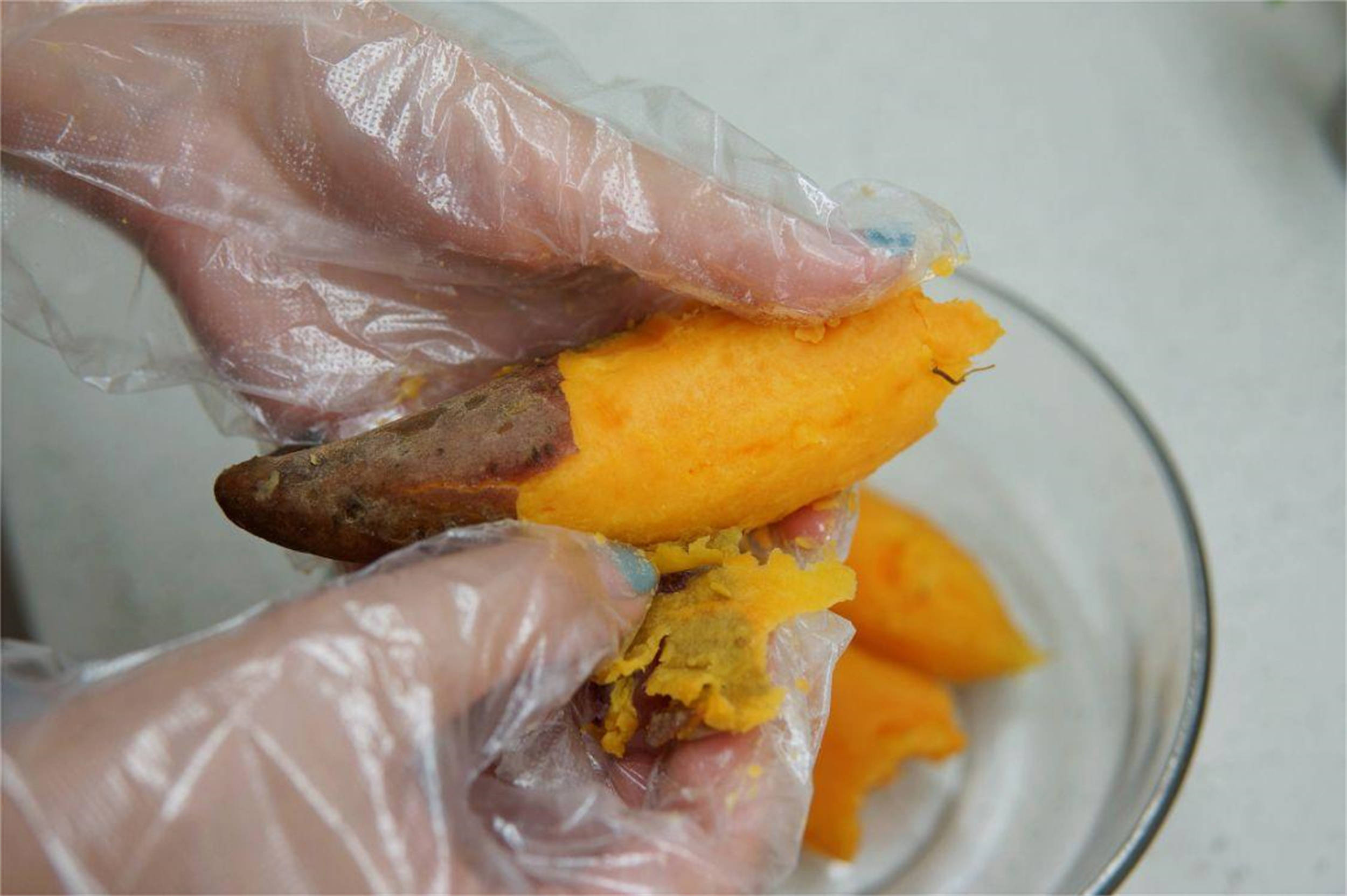 1、红薯洗净放入锅中煮15分钟,捞出去皮放入盆中,压成红薯泥。