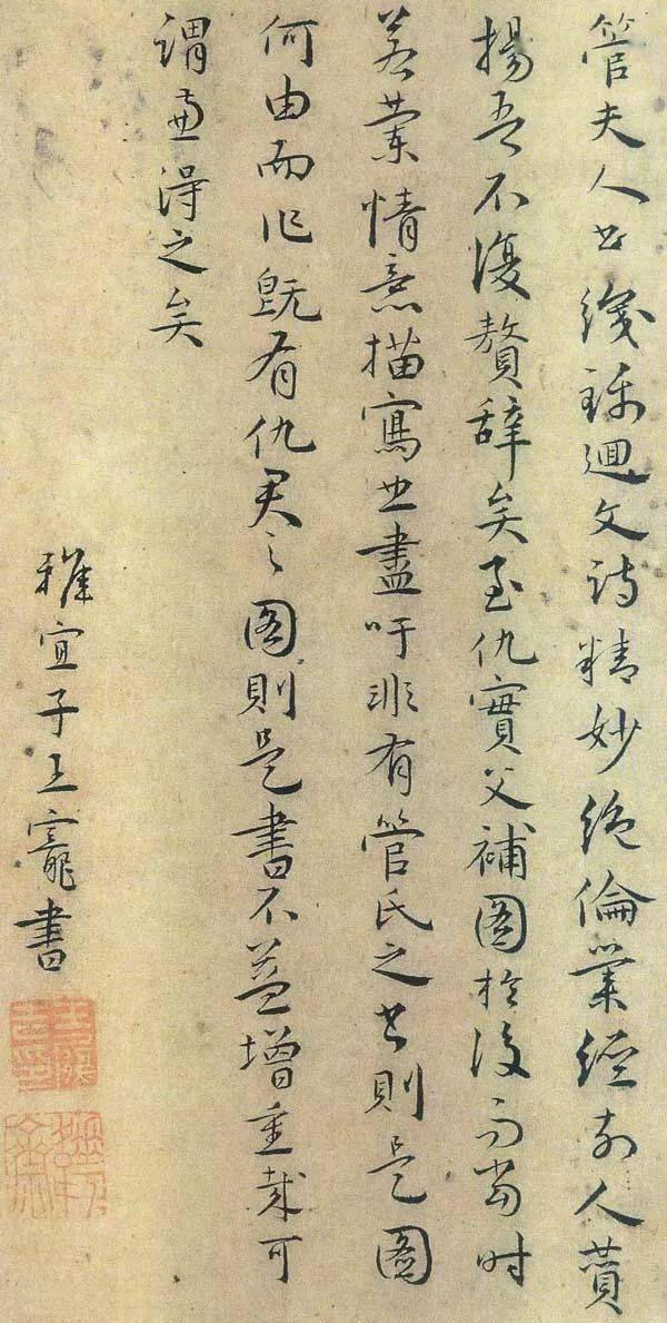 王宠一生用心诗文书画,兼擅篆刻,放意山水,才高志远,于诸方面都取得了较高成就,与祝允明、文徵明并称于世,并称“吴中三家”。其中尤以书法最为知著,他诸体皆能,以小楷、行、草最为擅长,取法魏晋,浸淫于钟、王,道正功深,书风趋于端庄古雅,在吴门诸子中,他的书法之趣味尤高,这原因就是他心不降唐宋以下,手熟于法度之内,他的笔下无狂怪之病,点画、结体皆有来处,心境旷达而使字势开阔正大,无琐小习气。他的小楷取法钟繇,冲和于二王而于古雅中见清淡;草、行法《十七帖》、《圣教序》等而形神兼备。在书法史上学王右军杰出者米芾、赵孟頫 之外就数他和王铎,而且各有所长;米得王之迅疾,赵得王之端正,王铎得王之雄厚,王宠得王之萧散。就气韵言,王宠为上,惜乎其早逝,未能含和圆融,更进一步。