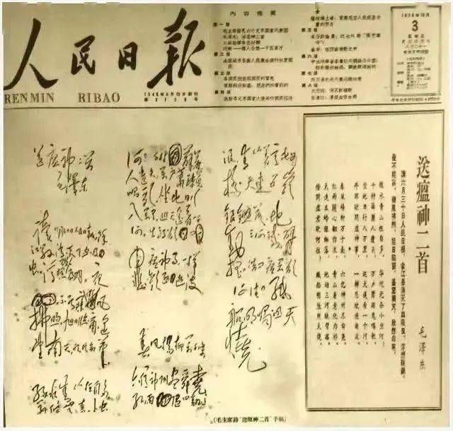 第一首诗艺术化地重现了余江县人民消灭血吸虫病的斗争经过:“绿水青山枉自多,华佗无奈小虫何”,本该是一派美好的南方水乡却被病疫侵扰,千村万户民不聊生,此时的毛泽东恨不能穿越时空,“坐地日行八万里,巡天遥看一千河”为人民找寻治病良方。瑞金中华苏维埃纪念园红五星广场。