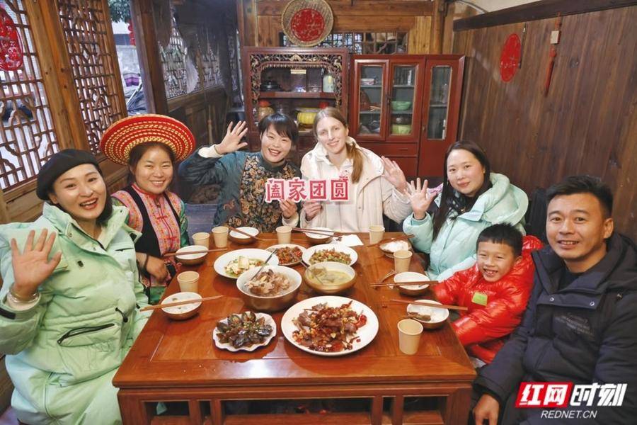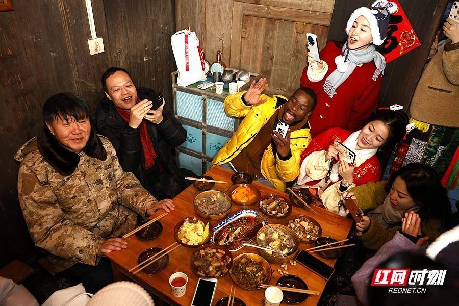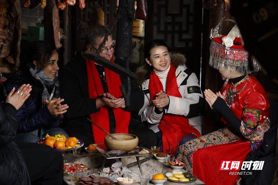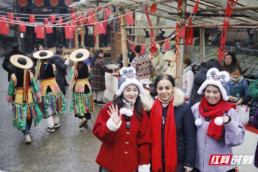 在湘西芙蓉镇跳土家摆手舞,柴火堆围炉煮茶,看古镇张灯结彩;在怀化溆浦逛集市、打糍粑,过浓浓花瑶小年夜……2月2日至5日,10名金牌导游和6名“老外”组成的年味品鉴团,沉浸式体验了湖南少数民族的年味。