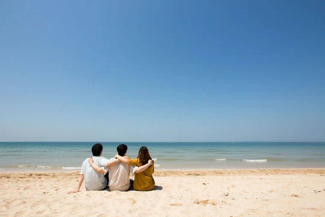 第一个人体力好,先到了山顶,俯瞰到了大海。