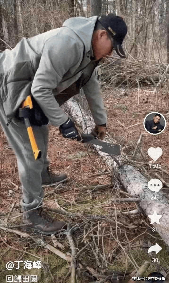 想象一下,在茂密的树林中,一位硬汉正挥舞着斧头砍柴,旁边是香气四溢的烤肉架。这不是电影中的场景,而是丁海峰在美国的真实生活写照。