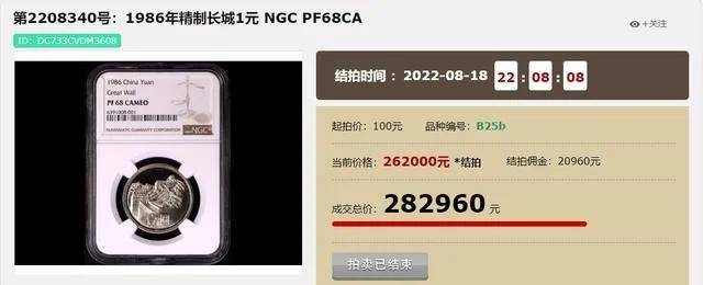 这枚精制币仅发行了660枚套币,稀有程度可想而知。它的出现,仿佛在收藏市场上投下了一颗璀璨的宝石。这正是这枚1986年的一元硬币精制币评分高达68分,能卖到26.2万元的原因。