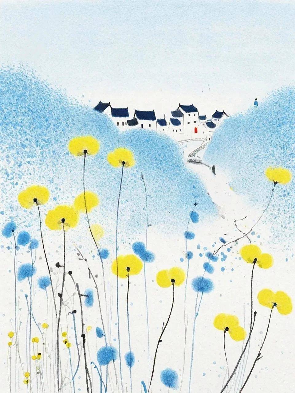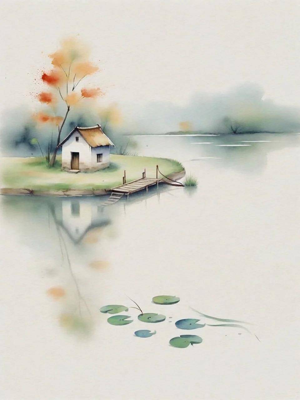 一顶斗笠,一件蓑衣,一艘小舟,一竿钓线,一曲高歌,一壶美酒,一人独坐江畔,独钓一江秋色。描绘出一幅淡泊宁静、超然物外的垂钓图景。