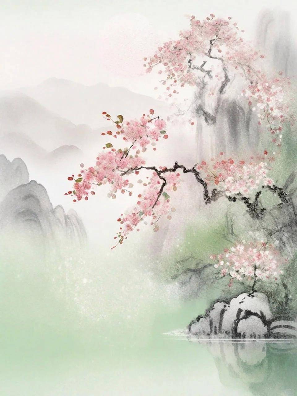 桃花随流水悄然远去,眼前展现出另一片超凡脱俗的天地,与尘世截然不同,描绘出世外桃源般的宁静与神秘。