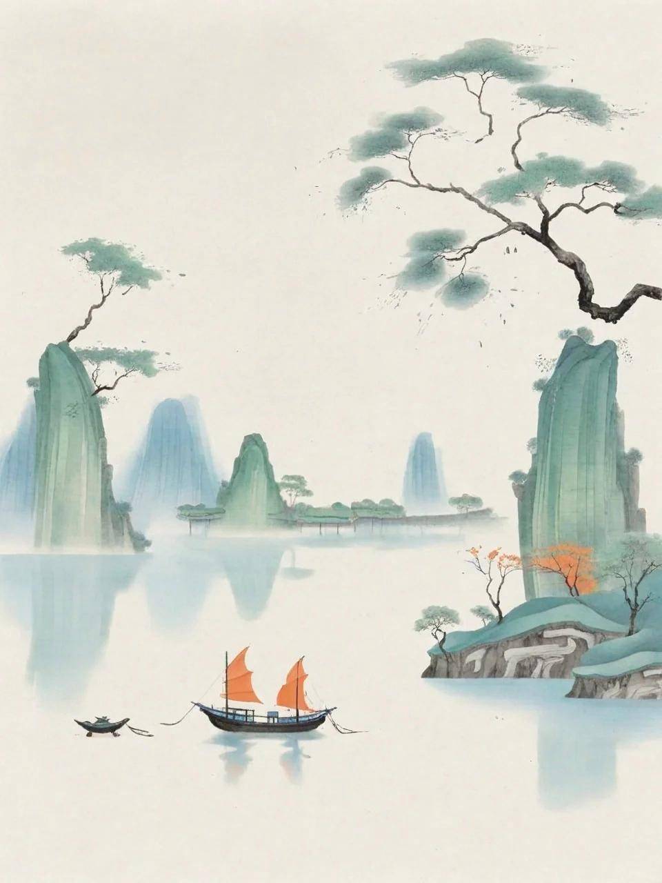小舟轻轻划破水面,自此远离尘世纷扰,任凭江海广阔无垠,承载余生的逍遥与自由。