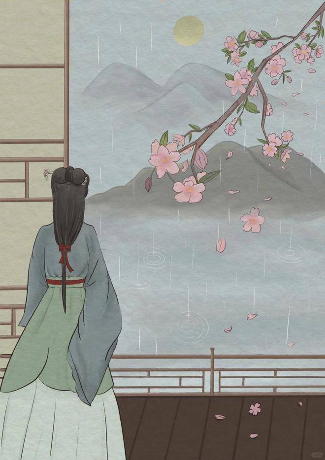 三更时分,秋雨落在梧桐树叶上,滴滴答答,仿佛每一声都是离别的叹息,叶叶相扣,声声入心,刻画了深深的秋意与离愁。