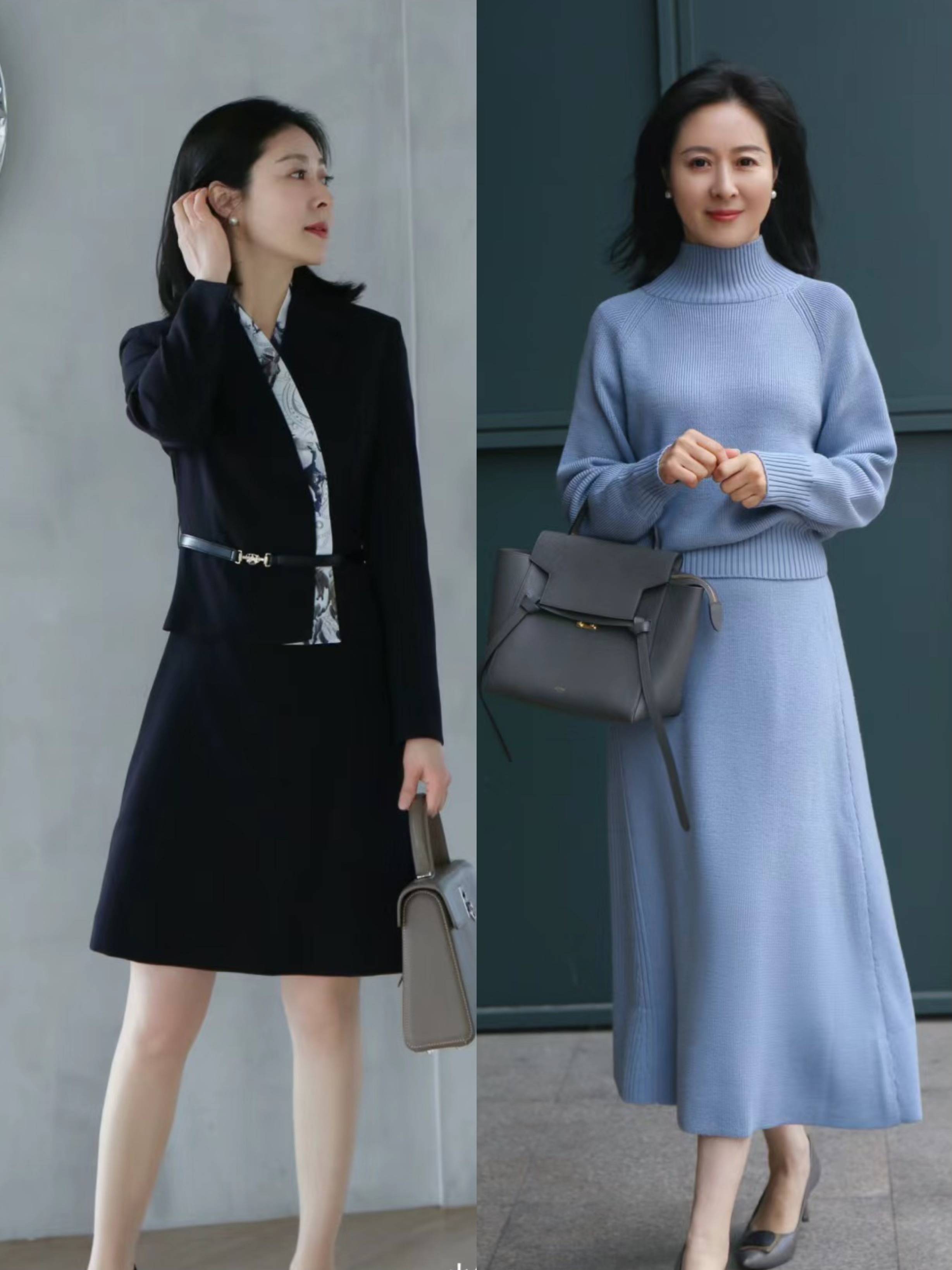 尤其是尖头的高跟鞋,鞋跟虽然是细高跟的设计,但高度不那么浮夸。用精致的尖头高跟鞋来搭配精致套裙,最好选择同色系的组合,体面又考究。