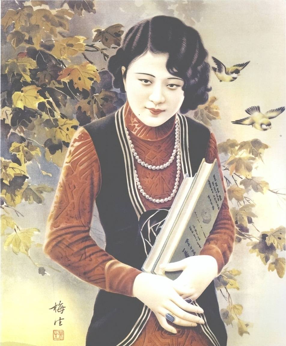 长相漂亮的旗袍美女。她抱着书,戴着项链,显得楚楚动人。