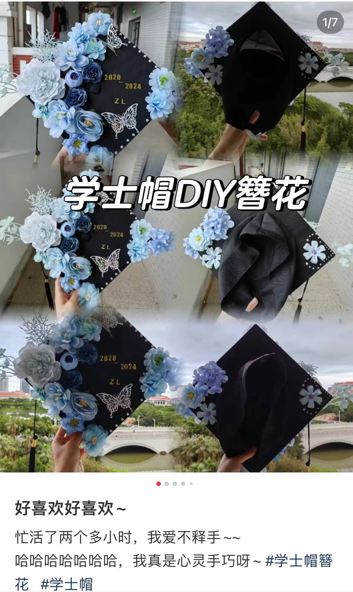 我国学位服,最初从欧美高校引进,由学位帽、流苏、学位袍、垂布四部分构成。借鉴而来的学位服样式,符合国际惯例,利于规范与辨认。但学位服设计款式单一,无法满足毕业生多元化、个性化的需求;服饰虽与国际接轨,却少了原汁原味的中国范儿。为学位服上增添国风色彩,是毕业生的心声,也是毕业生的创造。比如近年来不少高校毕业生选择用色彩缤纷的花朵点缀学士帽,勾勒出一幅幅富有仪式感的“中式毕业照”。随着“国潮风”的兴起,于民族风情中汲取中国韵味,于传统文化宝库中寻找创新灵感,最终也在学位服设计上碰撞出别样的火花。