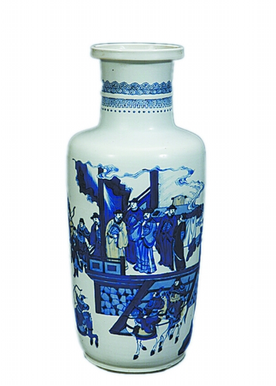 纹饰的表现要根据器物造型的不同而因型施艺,因型设计,尤其是绘画,需要根据不同的弧度和斜面来选择绘画的题材、构图与形象。如果器物表面的弧度过大,则适于表现单独个体的纹饰或者规矩图案,如花鸟、缠枝图案等,而对于山水、人物来说就不很合适,容易造成变形,破坏了画面的美感。器物形体较为硕大,且表面的弧度较小,接近于平面的,更易于表现类同纸面效果的山水风景与人物故事一类的题材。由于康熙御窑瓷器工艺的不断提高,大型器物的制作有了技术的保证,也为大量山水、人物题材的绘画在瓷器上出现提供了可能的条件。