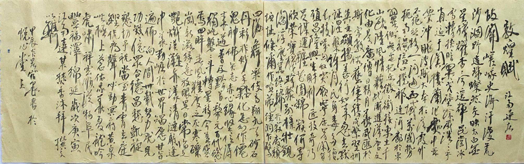 盛夏,虽自身心性可趋宁静,但纸墨性能,已不甚宜于细研丹青。简笔写意之余,解衣盘礴,信手以砚中宿墨书己旧文《敦煌赋》,略觉得趣。