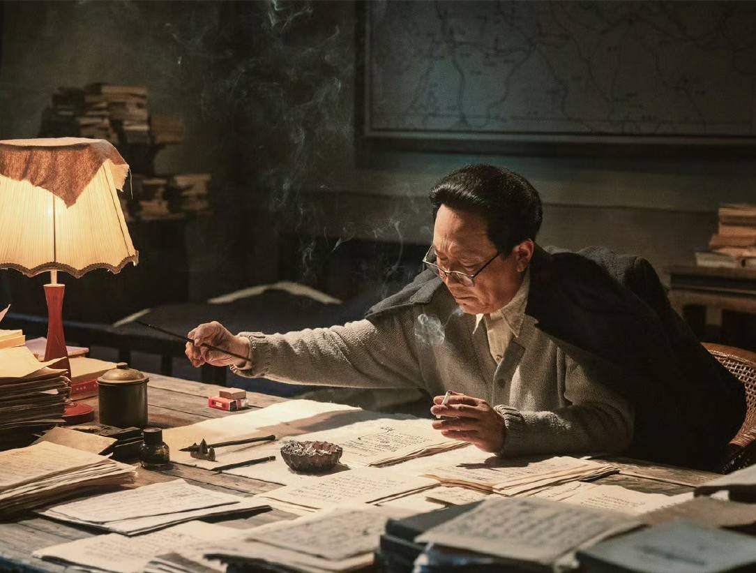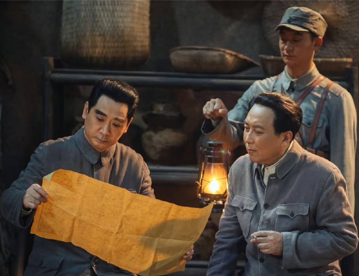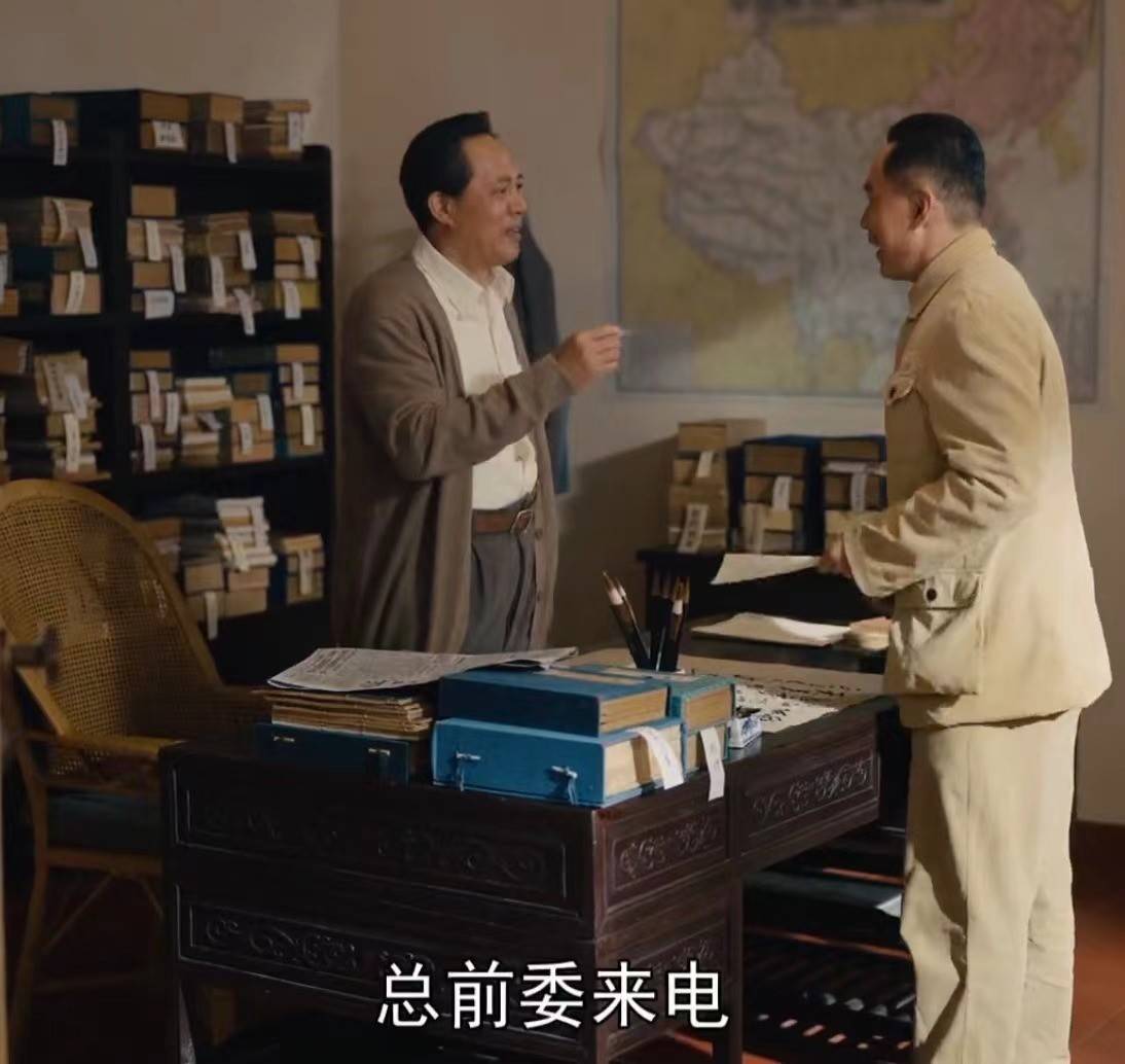 人物情绪表达的很精准,演技也是松弛有度,就连人物的仪态也很有生活气息,听到大捷的消息时,一边跟朱德聊天,一边坐在桌子上,让大家看到了主席也有接地气的一面。
