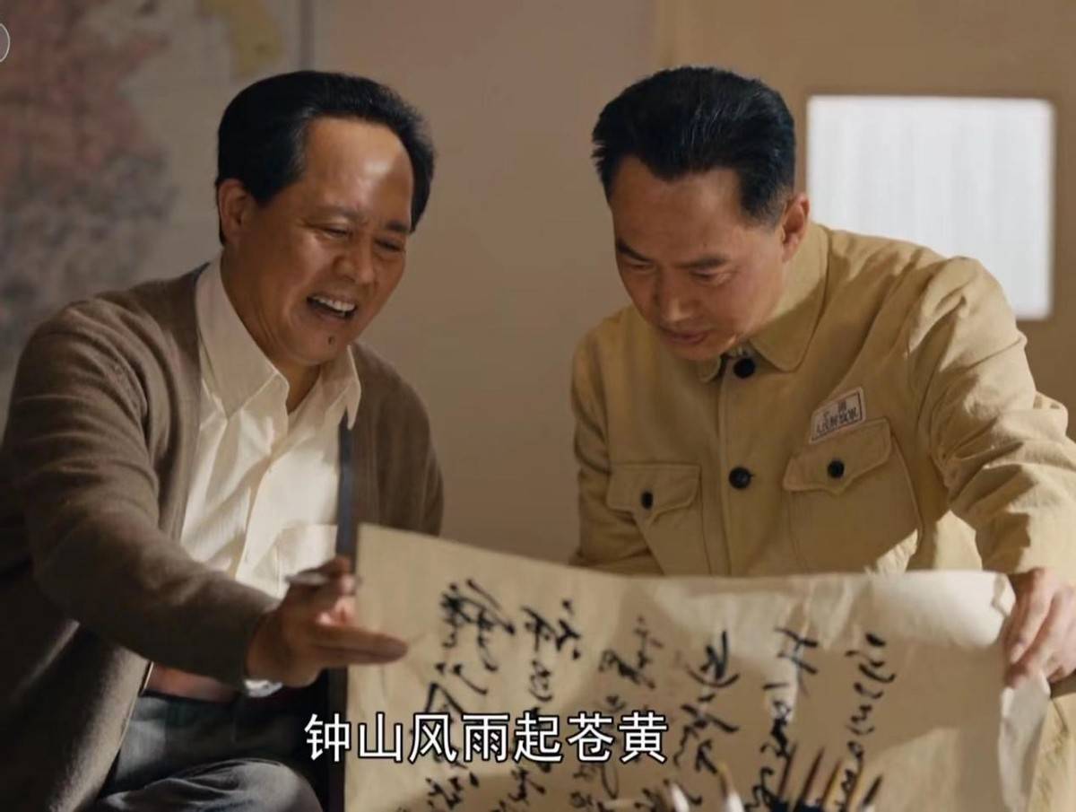 这部剧里的第一个镜头就是全国解放之前,各大战役频频大捷,主席伏案提笔,写下“钟山风雨起苍黄,百万雄师过大江”的诗句。