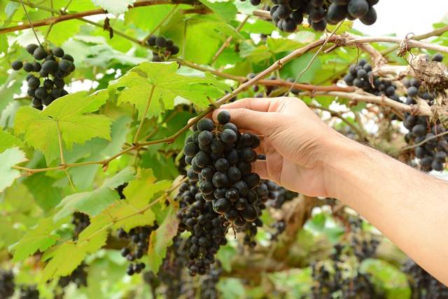 前面加了个“野”字,这意义就完全不一样了,这野葡萄是纯天然、纯野生的葡萄,它长得像葡萄,但是个头要比家葡萄小得多,它是属于群居,而且个头比较小;口感和家葡萄也完全两样,相比较家葡萄,野葡萄口感还是比较酸的,它一般都是树梢接触阳光的地方长势喜人,而且数量比较多,小的时候因为没有啥水果,虽然口感较酸,但是吃着也是相当过瘾,爸爸喜欢用它来酿酒,那可真是野生纯葡萄酒。