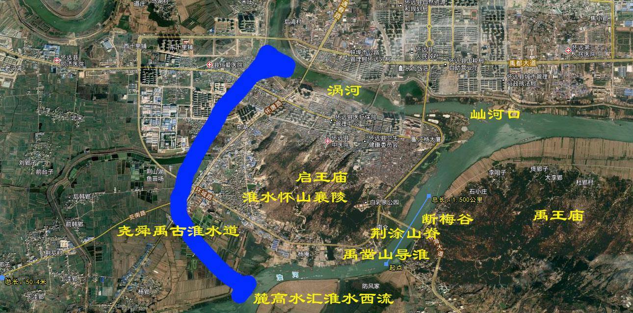 在“夏之兴也以涂山”“禹合诸侯于涂山”的淮河涂山西麓,有一个淮河“荆涂之峡”。在大禹“凿山导淮”之前,“荆涂之峡”却是荆山涂山相连在一起的山谷,阻断了淮水的北流。