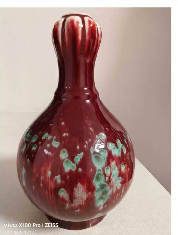 飘彩釉里红蒜头瓶的制作工艺极为精细,需要匠人们具备深厚的技术积累与经验。首先,选择优质的瓷土作为原材料,经过一系列复杂的处理过程,包括淘洗、筛选等,制备出纯净细腻的瓷泥。随后,通过手工拉坯的方式塑造出蒜头瓶的轮廓,并且在干燥后进行打磨,确保瓶身表面光滑无瑕。在装饰阶段,使用铜作为着色剂,在釉下描绘出飘逸的图案,然后再施以透明釉,经高温烧制,最终形成色彩鲜艳且层次分明的艺术效果。