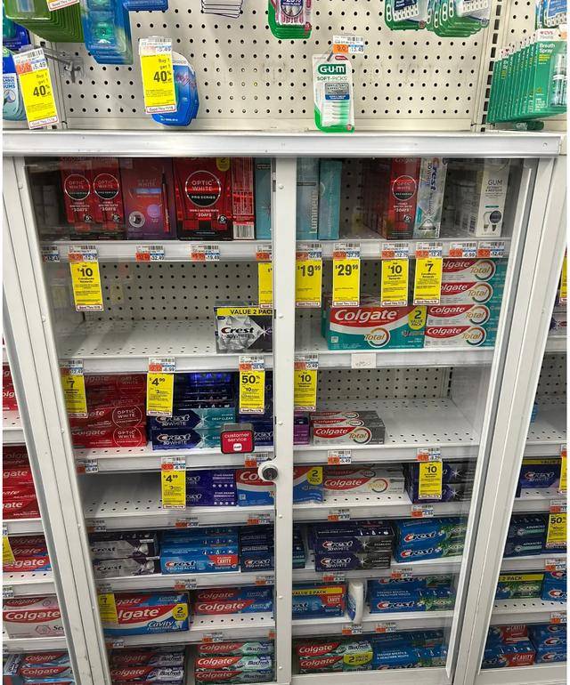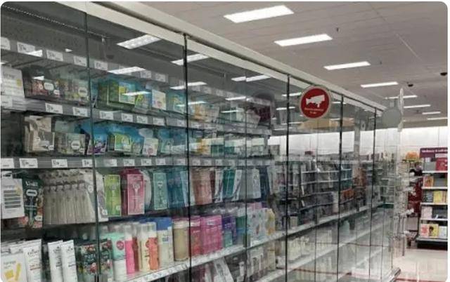美国零元购事件持续发酵,各大超市不得不采取加锁措施保护商品。连最基本的日用品,牙膏、洗发水都要锁在柜子里,这让不少人感慨美国治安状况。