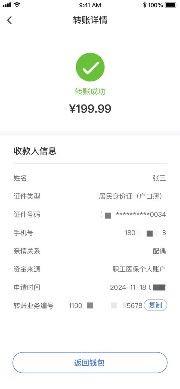 医保钱包转账是实现近亲属医保个人账户共济的一种方式。使用医保钱包转账功能,个人可将本人医保个人账户或医保钱包中的资金转账至近亲属医保钱包中,供其用于就医购药费用结算、居民医保个人缴费等。