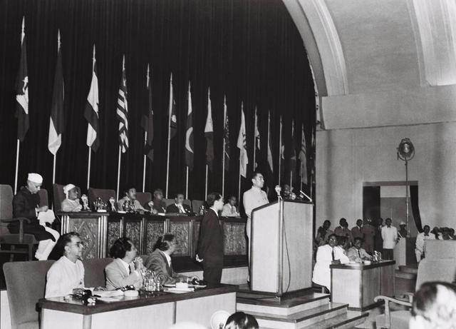 周总理也再次提出了“求同存异”方针。并且,还向参会国分享了中国独立实现经济文化等方面快速恢复发展的宝贵经验。