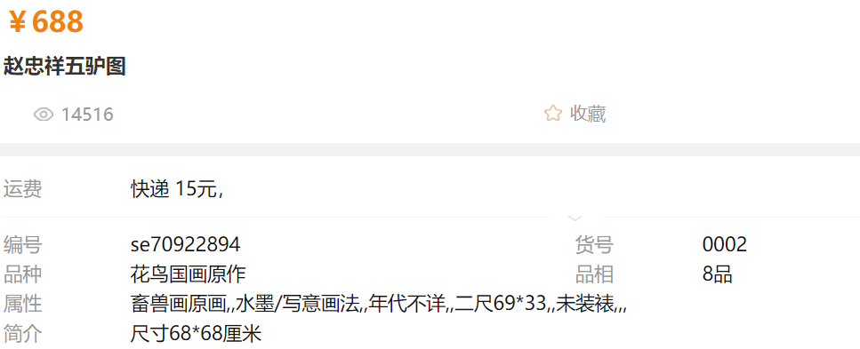 只是作者没想到的是,仅仅只是过了几年,赵忠祥生前的画作就已经变得如此不值钱了,不久前,作者在网上看到了一则拍卖信息,内容是一副赵忠祥老师生前遗留的画作《五驴图》,如今的售价是688块,有零有整可以说童叟无欺
