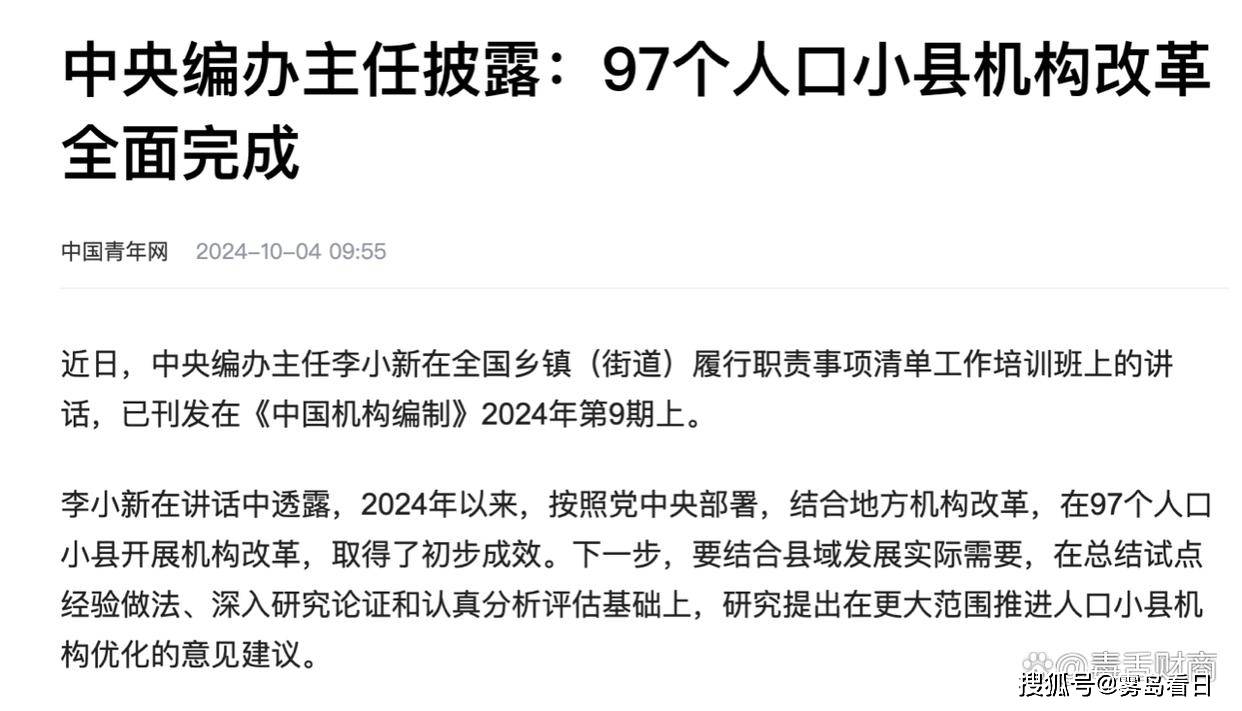 近年来,为了应对财政压力和人口结构变化,国家正在加速推进小县机构改革。