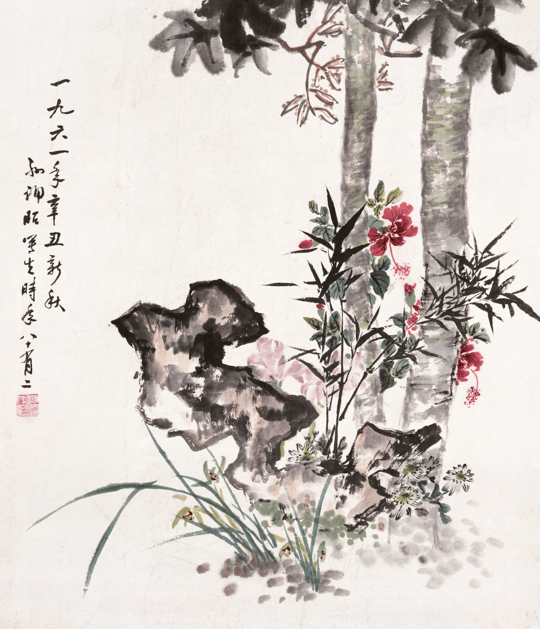 题识:一九六一年辛丑新秋,孙诵昭写生,时 年八十有二。