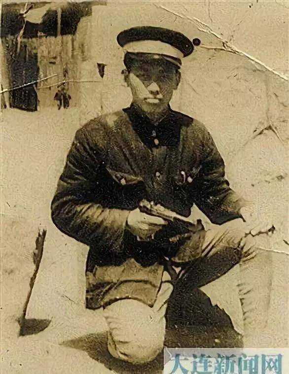 大连的第一代人民警察装束,这名警察手中拿着一支日制南部94式手枪
