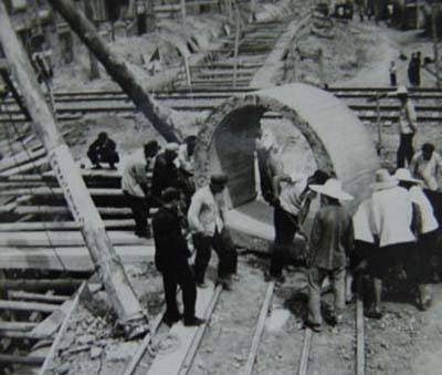 一张铺设下水道管道的老照片,可以直观感受当时下水道管路的粗细