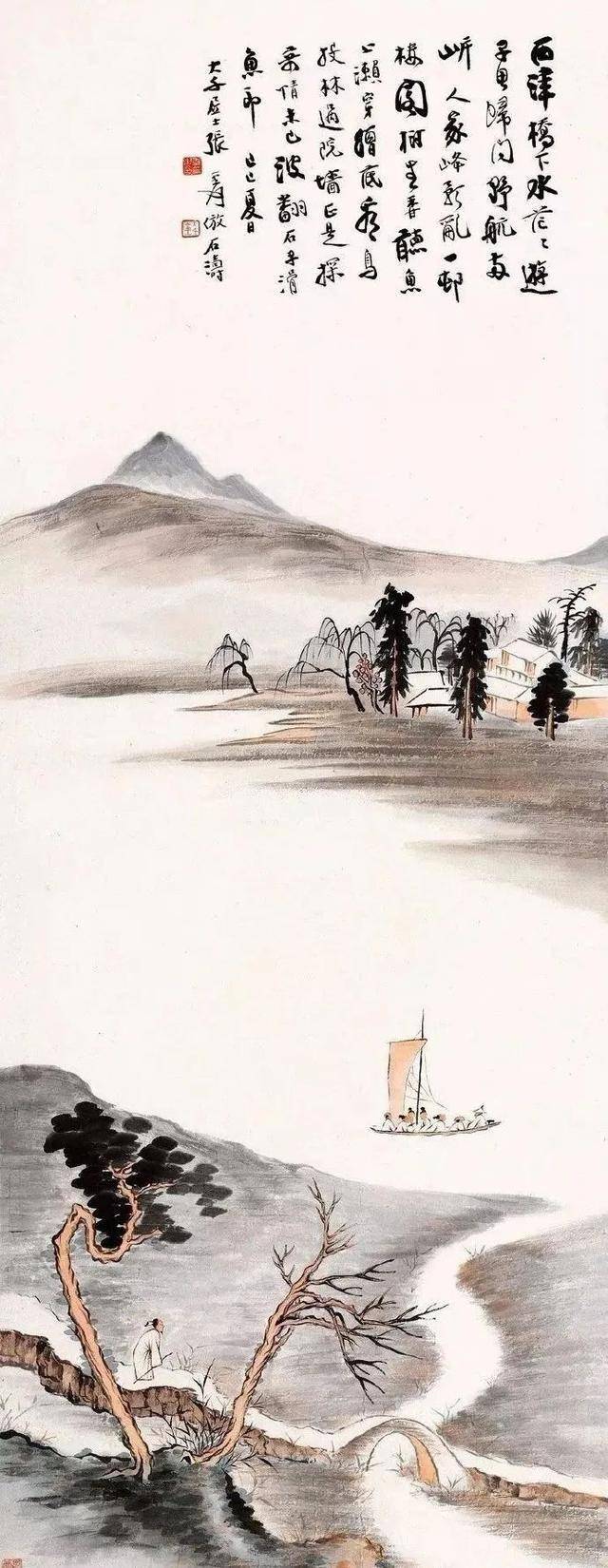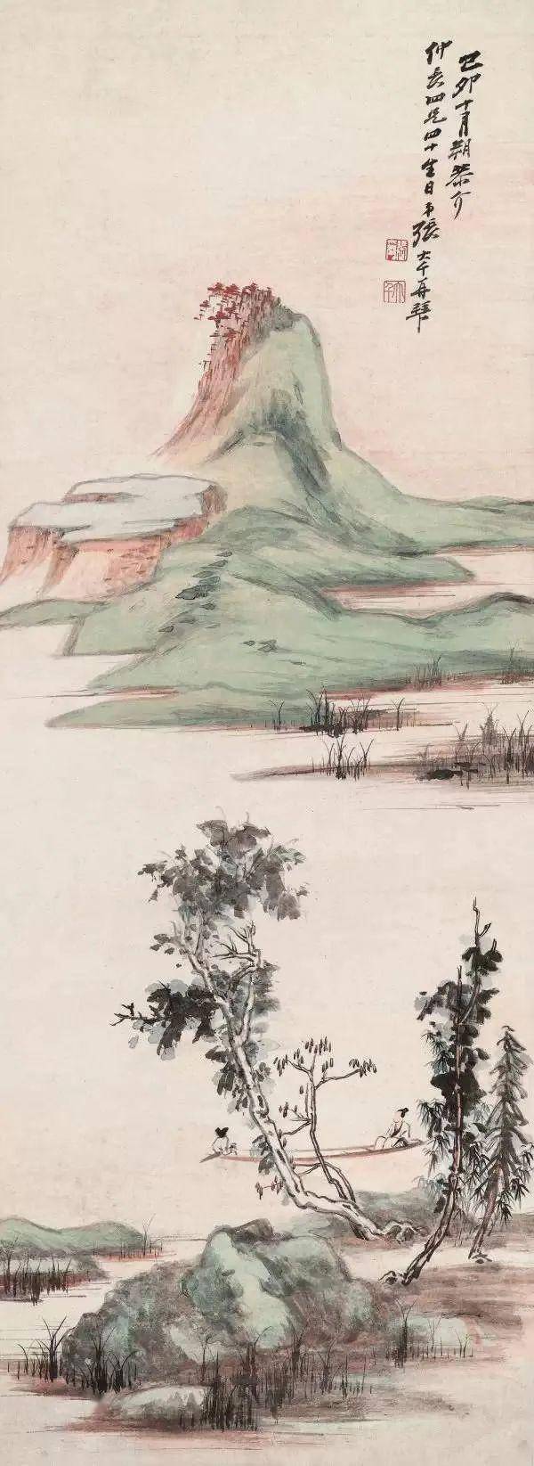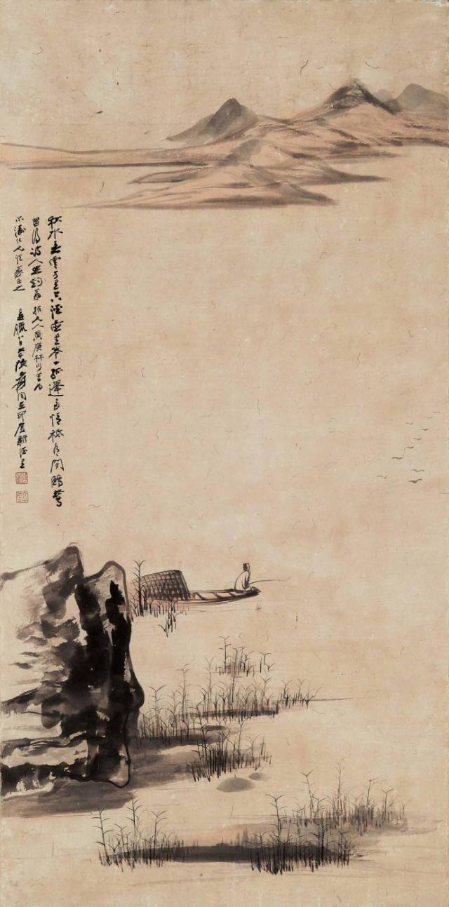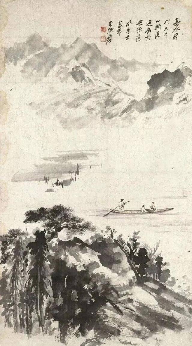 ——(清)原济自题《轻舟观瀑图》