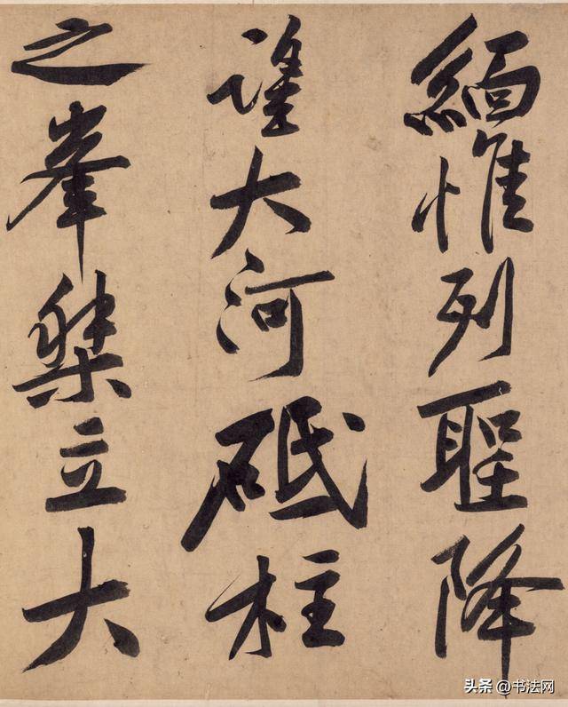 站在此帖的面前,那种巍峨、壮阔的气势,直接扑面而来,以荡桨笔法书写,点画震颤、抖动,时而采用“飞白”之法,墨色枯涸,呈现苍劲、古拙的意味,增强作品的高级感,同时线条的波动起伏,以及开张的开合和造势,彰显动态感和趣味性,全卷动静相生,令人看后震撼不已。