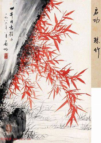 先生画竹,常常用朱砂。张志和先生的学书笔记《启功谈艺录》书后,就附着先生的一幅长卷朱竹,我静静地读了又读,直觉得,先生一世的情怀,都隐蕴在那一丛丛静谧的竹林里了。