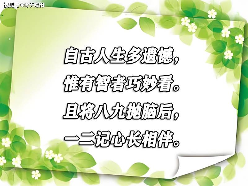 自古人生多遗憾,惟有智者巧妙看。