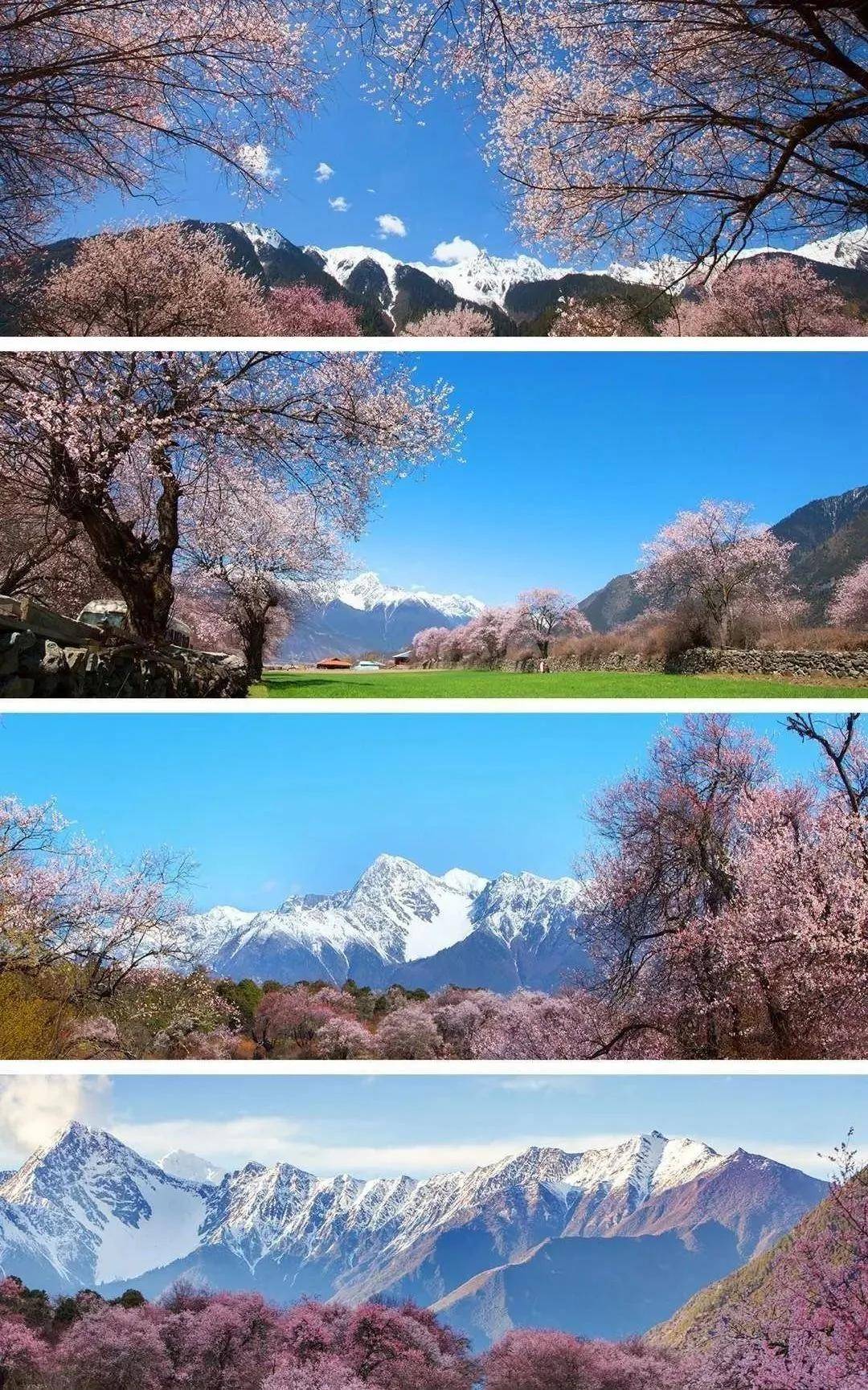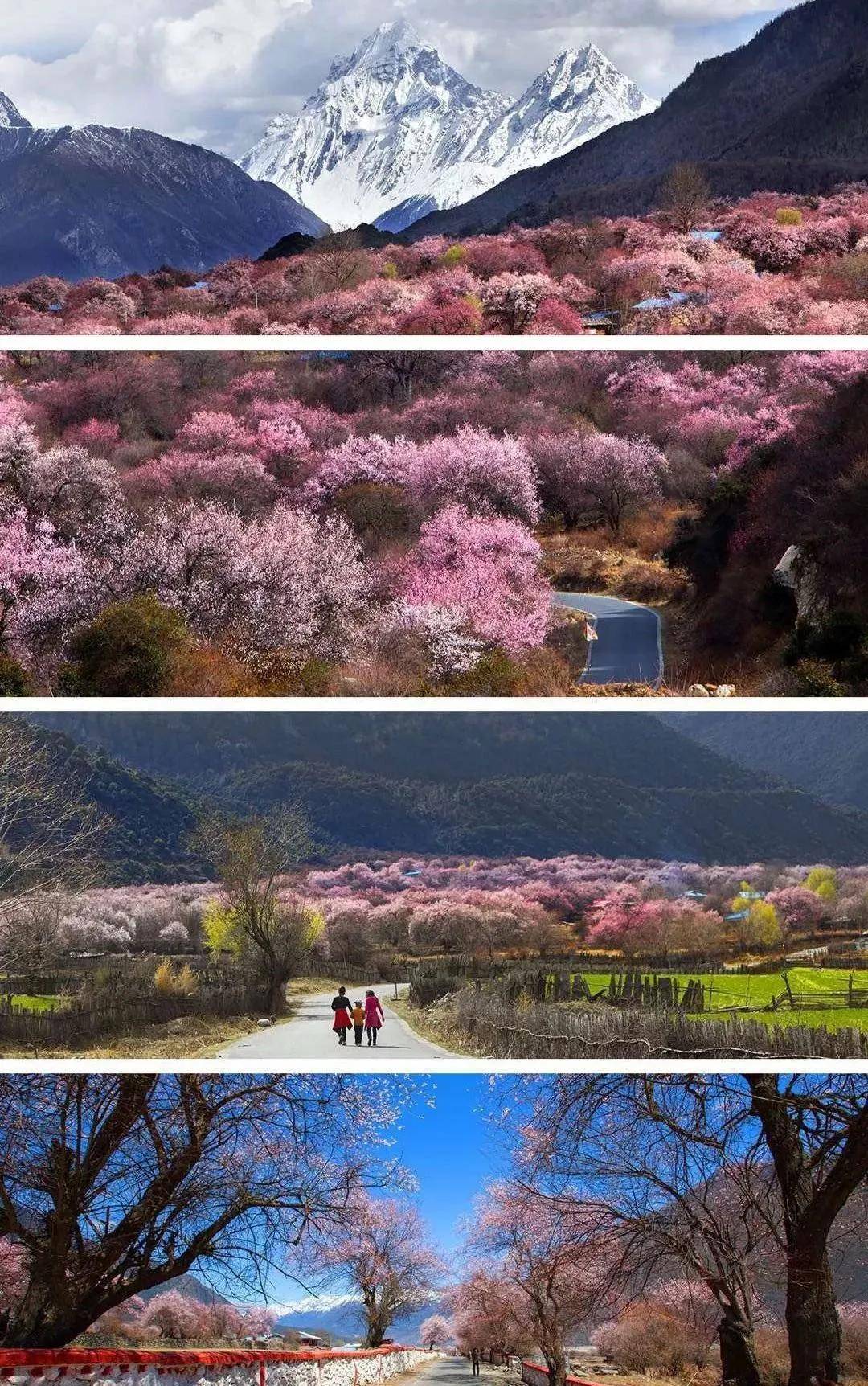 西藏的阳春三月带着温柔浪漫,林芝桃花美景:一半是雪,一半是花