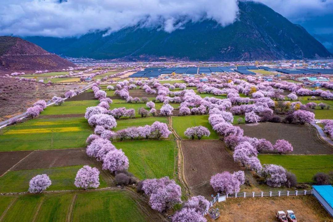 和国内其他地方春天不一样的是,雪域高原西藏的阳春三月,带着无尽的温柔和浪漫,因为这里的春景,一半是雪,一半是花。