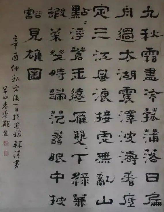 他写隶书的第二个观点就是写隶书要讲究法度,也要不拘泥于法度,不然就会丧失生动。汉碑是古雅之中饶有生动之趣,如果一味方整,则会少于风致。他特别推崇《礼器碑》,认为它笔力瘦劲,自成一家。因此在汉碑临习与隶书创作中,保持结字方正朴质的同时,他还会通过用笔、速度、节奏的变化,获得奇怪之姿与飞动之势,让作品更有“神气”。
