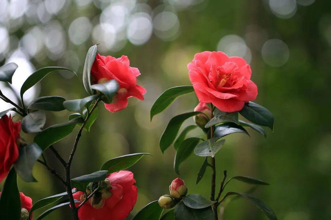 且请看那一树,齐着华庭寺的廊檐一般高,油光碧绿的树叶中间托出千百朵重瓣的大花,那样红艳,每朵花都像一团烧得正旺的火焰。这就是有名的茶花。不见茶花,你是不容易懂得“春深似海”这句诗的妙处的。