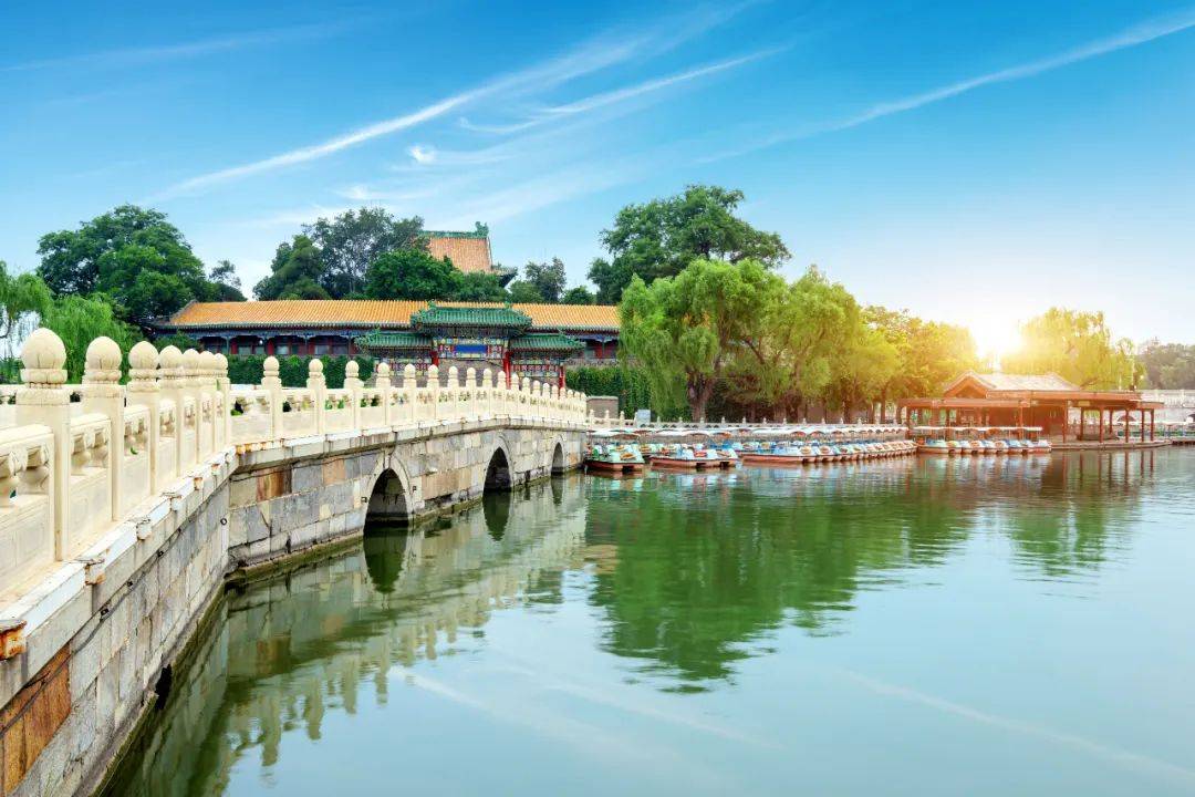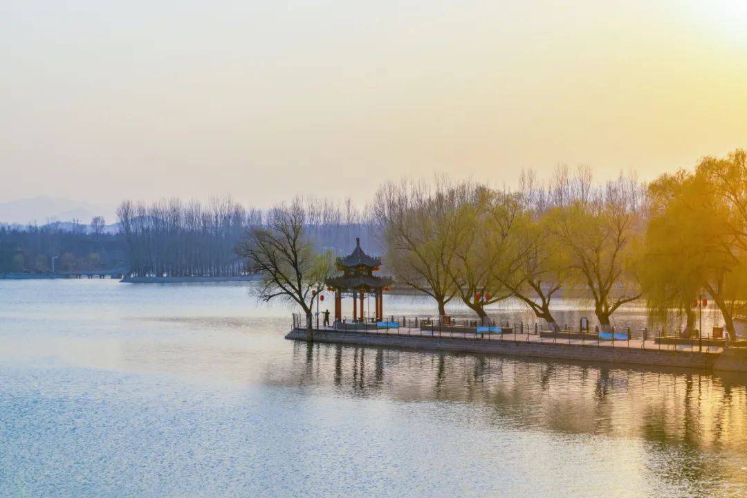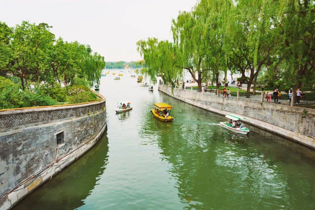 看湖水潋滟、垂柳拂面、鲜花盛开。