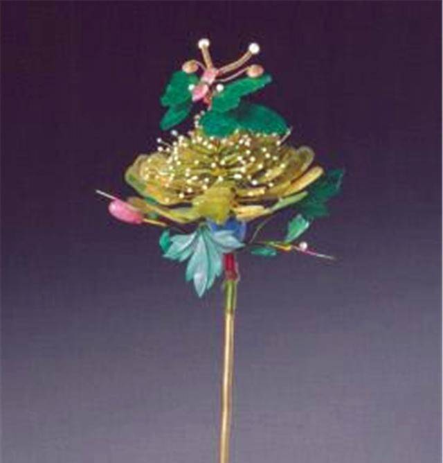 那只簪子是用铜镀成的,上面镶嵌的珍珠翡翠等材料都是特别珍贵的。这只簪子最特别的地方是上面用碧玺打造的芙蓉花,而且还是立体的,本来在一支小小的簪子上面做一朵芙蓉花就很不容易了,可是那时候的工匠竟然还能把它做成立体的。