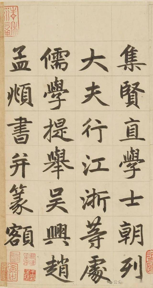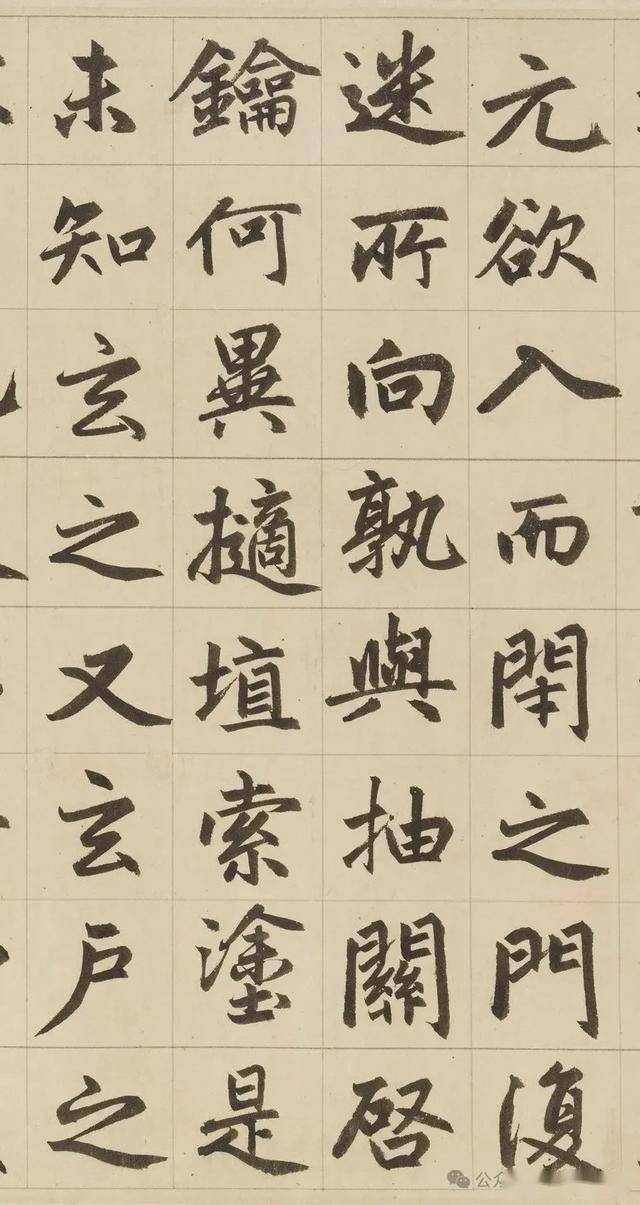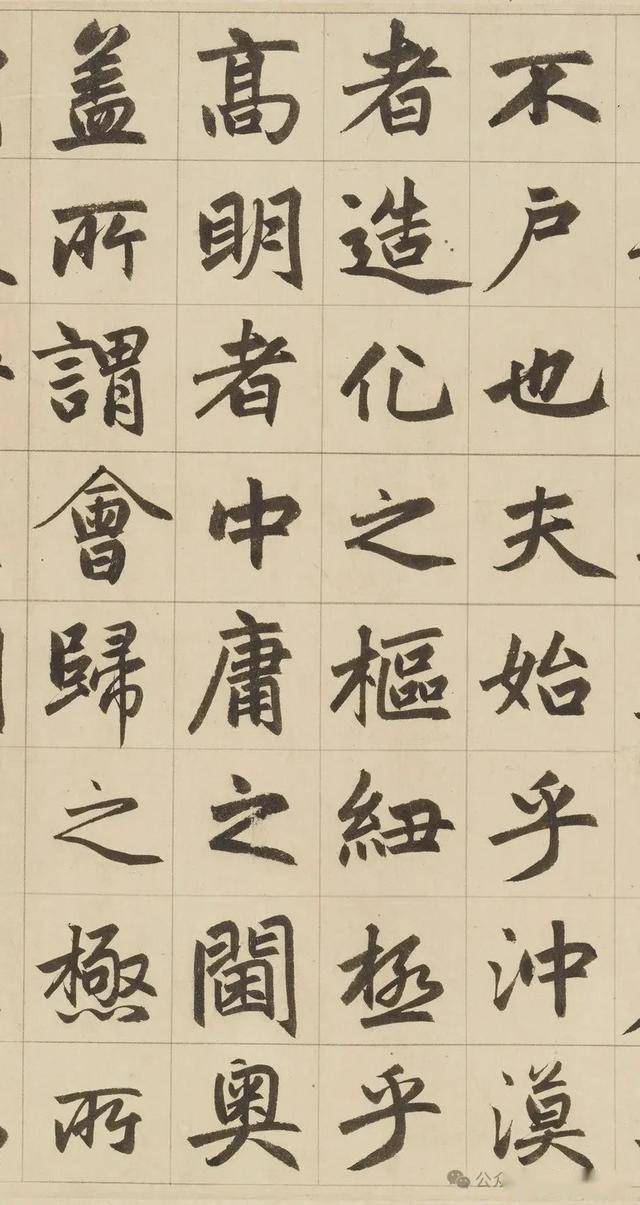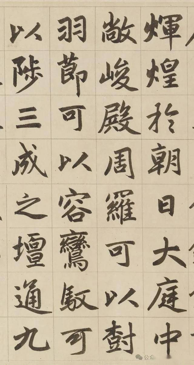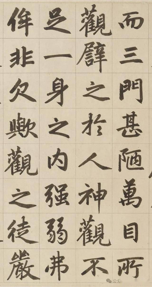 《三门记》堪称是赵体的集大成者,可以说对赵体进行了全面升华。在笔法上,它藏露兼施、笔道匀净、腾挪起伏、点画呼应,将赵体笔法的灵动性与节奏感展现得淋漓尽致,既传承了传统书法的精髓,又融入了赵孟頫独特的创新元素,使笔法更加丰富多样。在结体方面,扁方取势、疏密有致、部件协调,让赵体字宽绰秀美与劲挺内涵完美统一,展现出独特的结构美感。而在章法上,行列整齐、字势欹正、墨色变化,实现了严谨有序与气韵生动的和谐共生,使作品的整体艺术感染力得到极大提升。《三门记》就像是赵体书法的一座丰碑,它凝聚了赵孟頫一生的书法智慧和艺术追求,将赵体的特点发挥到了极致。