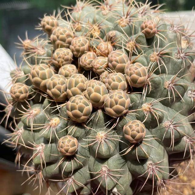 值得提到的一点是,非常炎热的夏季,还是需要给绯花玉找一个相对阴凉通风的环境的,因为夏季是绯花玉的开花季,花苞被强光一晒,可能会晒焉掉。强烈的阳光也会灼伤球体的表面。