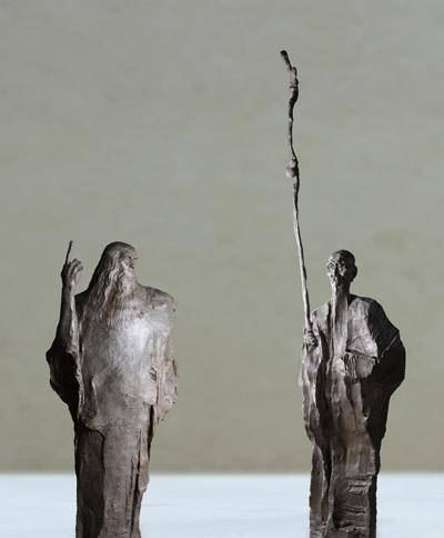 吴为山《超越时空的对话——意大利艺术大师达·芬奇与中国画家齐白石》(青铜)