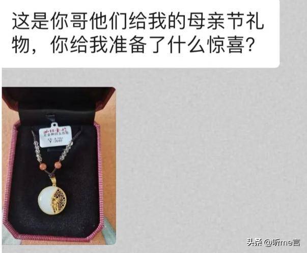 要知道她当时为了给母亲准备母亲节的礼物,还特意跑到金店去购买足金的玉如意,还花了她小半个月的工资。