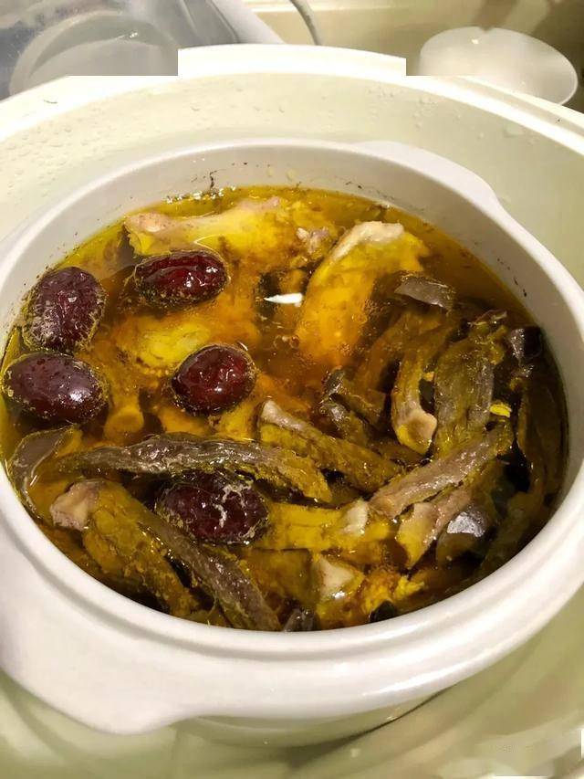 2。将牛角菇、红枣洗净,与姜片一起放入炖锅中,加适量清水,中小火煮两个小时。