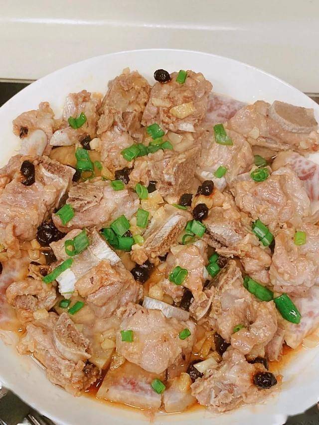 1、排骨剁成小块清洗干净,然后加入姜蒜末、淀粉、生抽和花生油抓拌均匀,再腌制二十分钟备用。