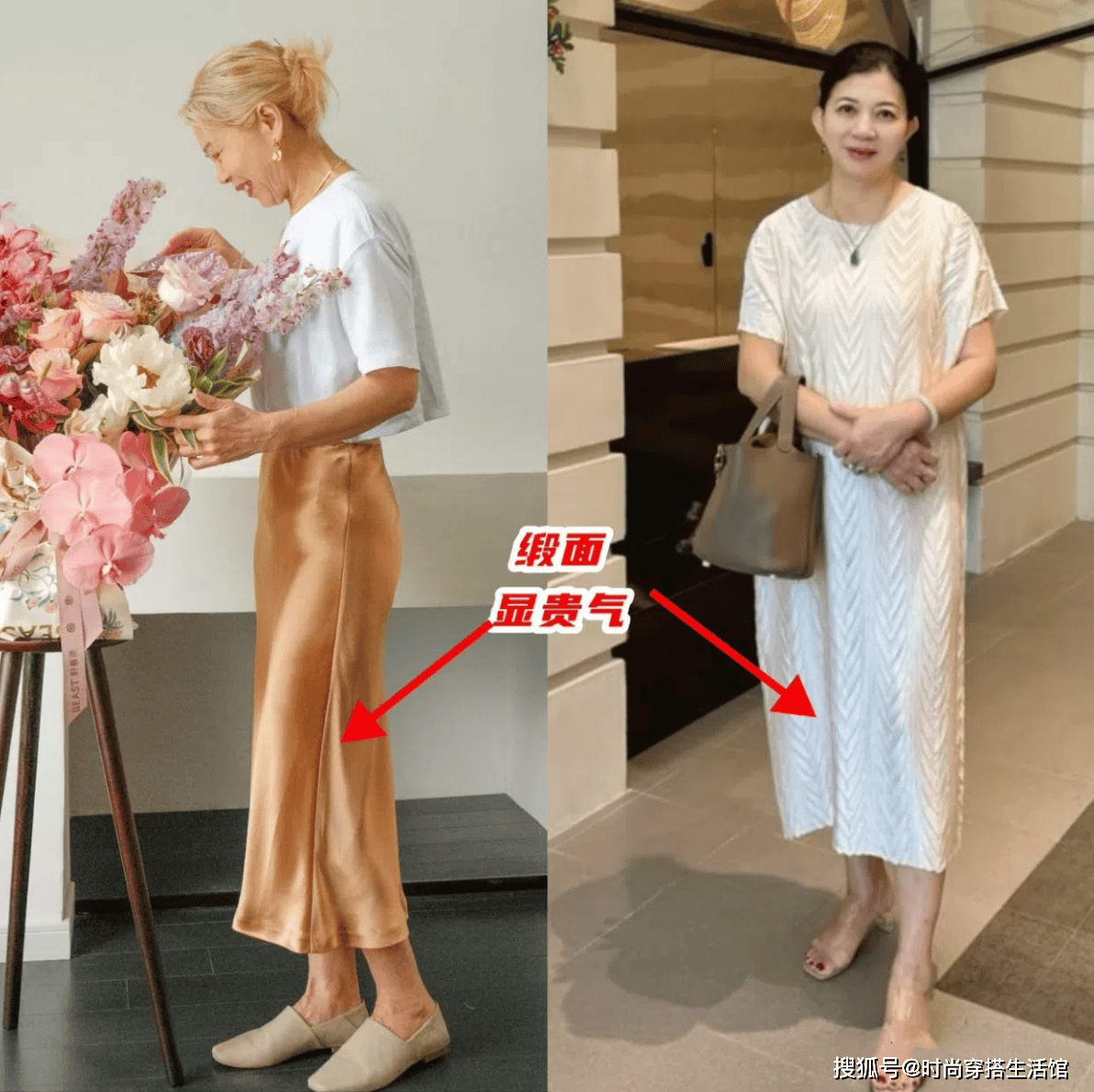 服装材质的好坏是直接影响整体穿搭的气质和舒适体验,像是夏季穿搭我们选择服装的时候尽量选择柔软舒适的面料。比如像是缎面、真丝、新疆棉和亚麻等透气的面料都非常适合夏天,中老年女性穿上后不仅舒适,而且还能提升整体造型的档次。反之如果是廉价面料的话,就很容易出现起球、变形,拉低整体穿搭气质。