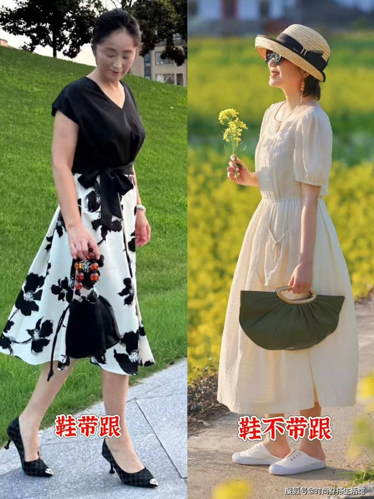 最后就是大龄女性在挑选服装的时候,不管是上衣、下装还是裙子,我们都要关注长度,尤其是裙子的长度,长度上膝的短裙会暴露腿型,我们应该选择过膝不过踝的裙子既能够遮住大腿,同时还能巧妙的露出脚踝,在视觉上更能增高显瘦,完美的改善身材比例,轻松显高显腿长。