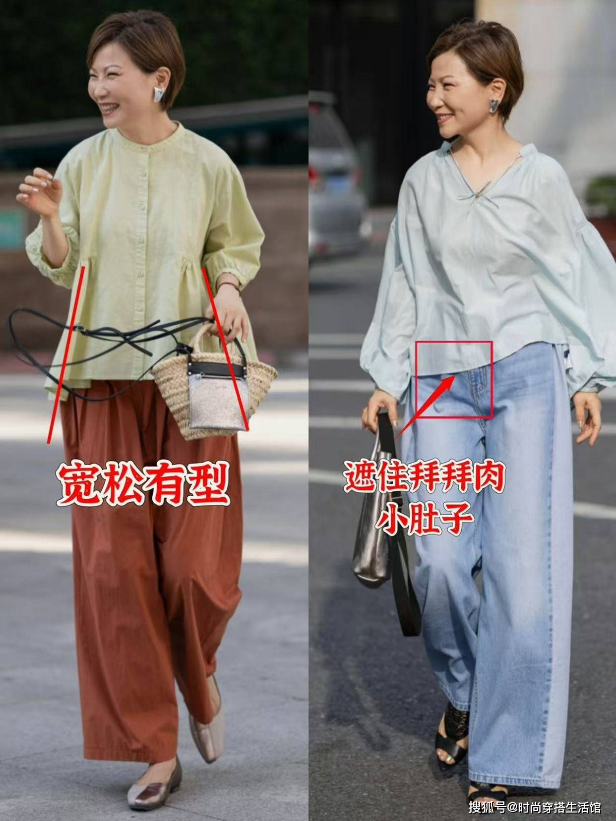 对于中老年女性来说夏季我们选择穿搭的时候,尽量要避开紧身的服装,主要是因为太过于修身的款式很容易产生紧绷感,从而嘞出赘肉和拘束不透气,完全不适合日常穿搭。反之建议大家可以选择合身的版型,整体穿搭不仅带有松弛感,而且还能起到遮肉显瘦的效果。